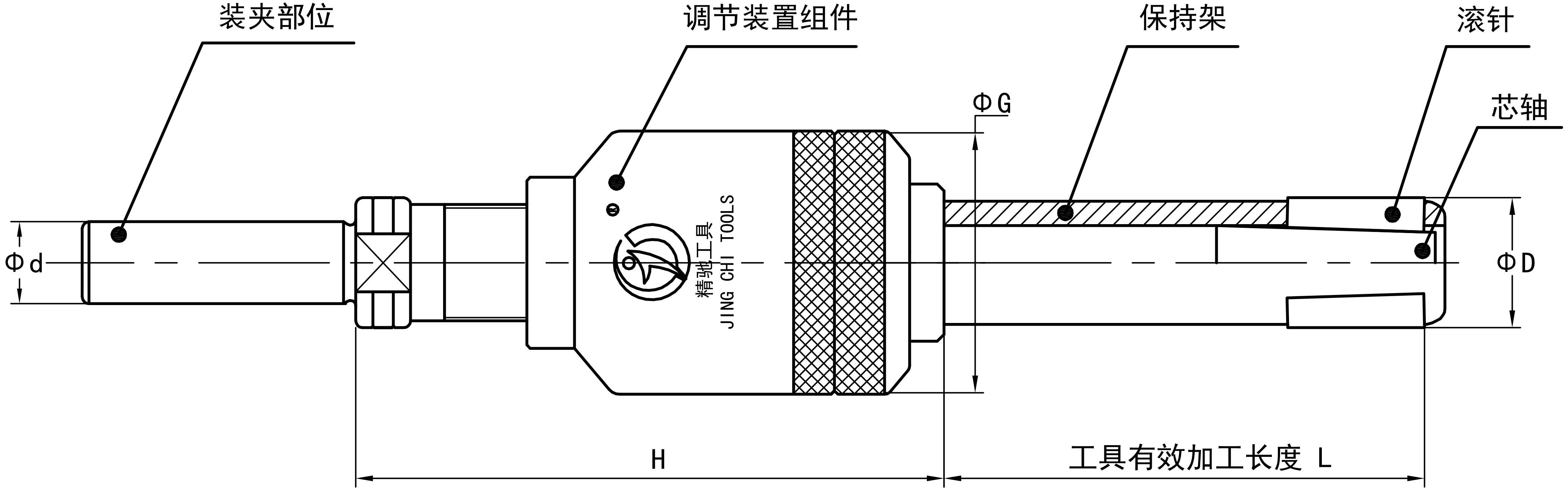 注:孔徑Φ26-68的滾壓刀有效加工長度從B檔開始柄部標(biāo)配MT3,如需其他型號(hào)規(guī)格需定做。加工孔徑Φ40以上的滾壓刀,由于調(diào)節(jié)組件的外徑比加工孔徑小,可通過加長柄部尺寸的方法增加加工長度。